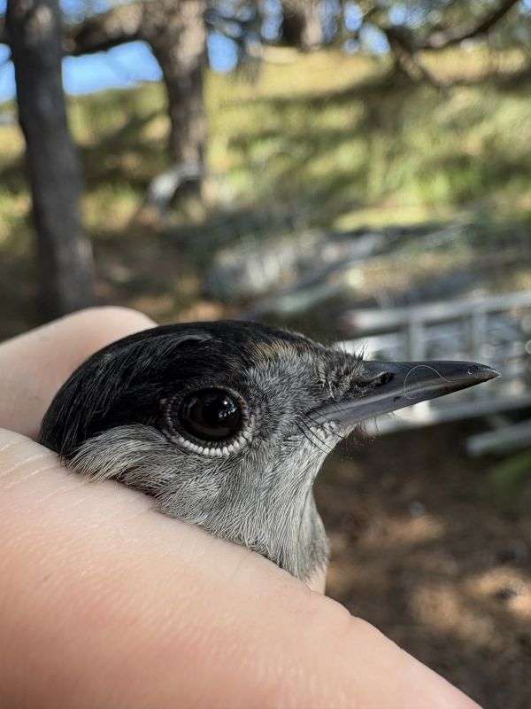 Juvenile male Blackcap with a nearly completely moulted head (only a few juvenile brown crown feathers left!)