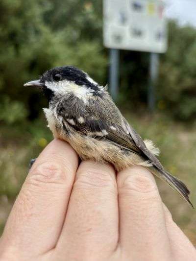 A cloudy start and gentle NE wind meant good conditions for ringing today. I focussed on ringing at Walsey Hills with 47 birds captured, 45 new and 2 retraps. The bulk of the birds caught were juvenile Blue Tit with 29 (who knew there could be so many individual Blue Tit visiting a feeder!). I also caught 3 Chiffchaff, 1 Coal Tit, 1 Whitethroat, 1 Lesser Whitethroat, 6 Dunnock, 3 Great Tit, 2 Greenfinch and 1 Blackbird. So quiet on the migrants front, so far…