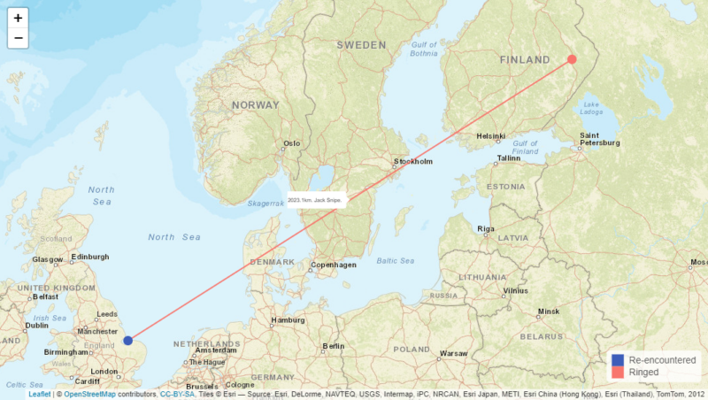 The movement of our Jack Snipe from Finland to Redwell Marsh